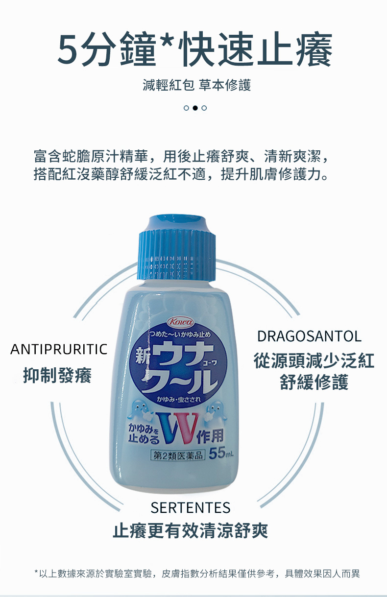 日本KOWA興和蚊蟲止癢液紓緩痕癢不適有奇效,在日本較知名的治療蚊蟲叮咬消腫的止癢藥,在日本一直都很暢銷,也是台灣人到日本必買的藥妝之一。台灣的包裝名稱是護那酷涼液,海綿頭設計塗感清涼舒適,標榜不含類固醇,對於蚊蟲叮咬有立即止癢效果。